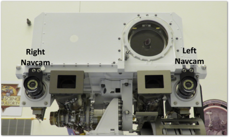Las NAVCAM son dos cámaras ubicadas en lo alto del mástil de la Perseverance, que sirven para tomar fotografías estereoscópicas a fin de trazar la ruta de desplazamiento del rover.