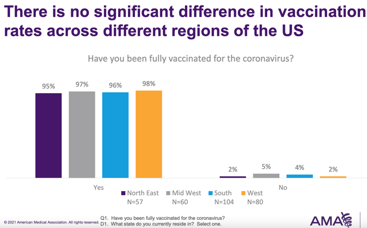 Esta encuesta contrasta con otra similar que ha realizado la Asociación Médica Estadounidense (AMA), en la que se concluye que el 96% de los doctores han sido vacunados.