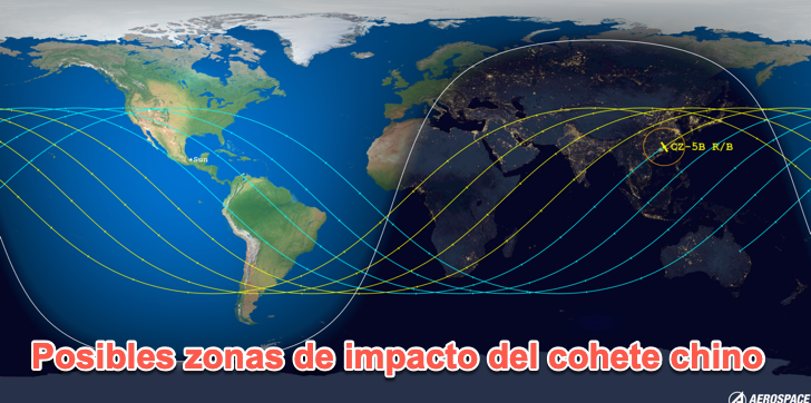 El pasado 24 de julio, la agencia espacial china lanzó el cohete Larga Marcha 5B con un módulo para ampliar la estación espacial Tiangong. El propulsor, de 25 toneladas, viaja a 28.000 km/h y caerá este sábado de manera descontrolada a la superficie terrestre.