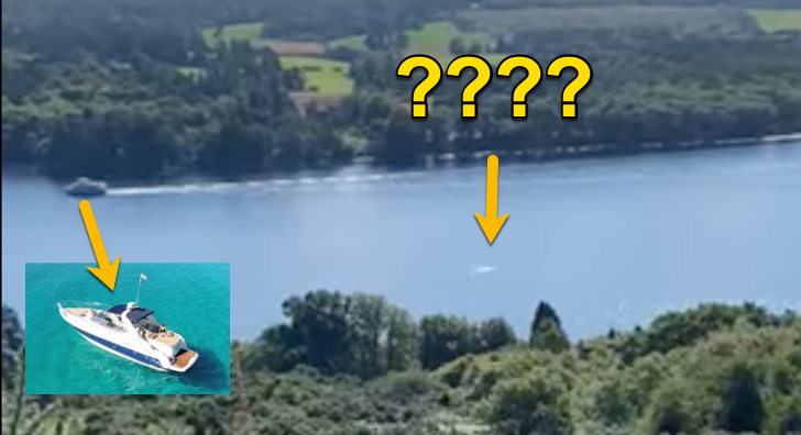 Si vemos una imagen al principio del vídeo, podemos contrastar el tamaño de la estela con un yate que está a su izquierda.